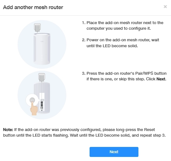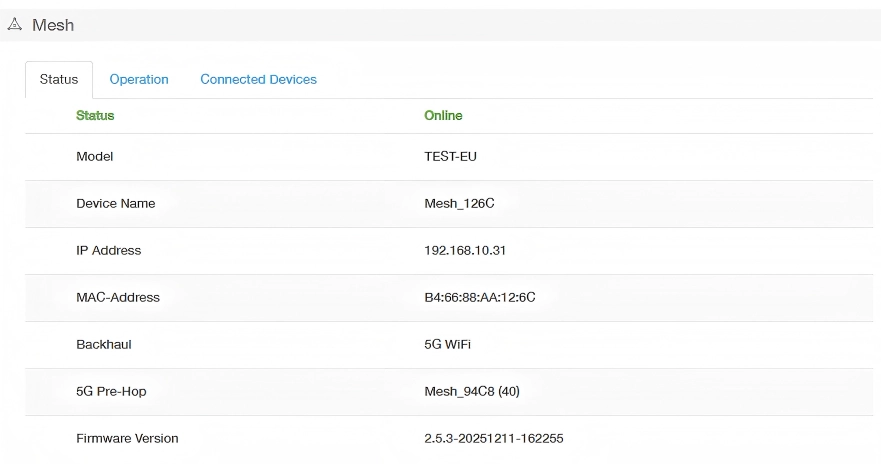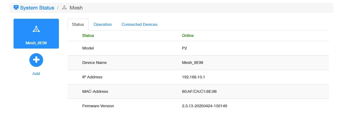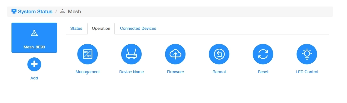 Go to System Status -> Mesh -> More details page to add or manage a Mesh Unit, please follow the steps: